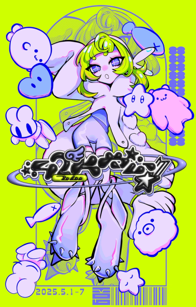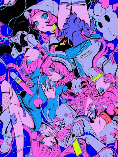 蛍光色とハッキリとした線のイラストを主に制作。